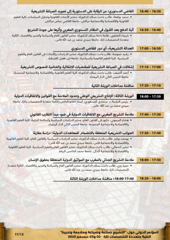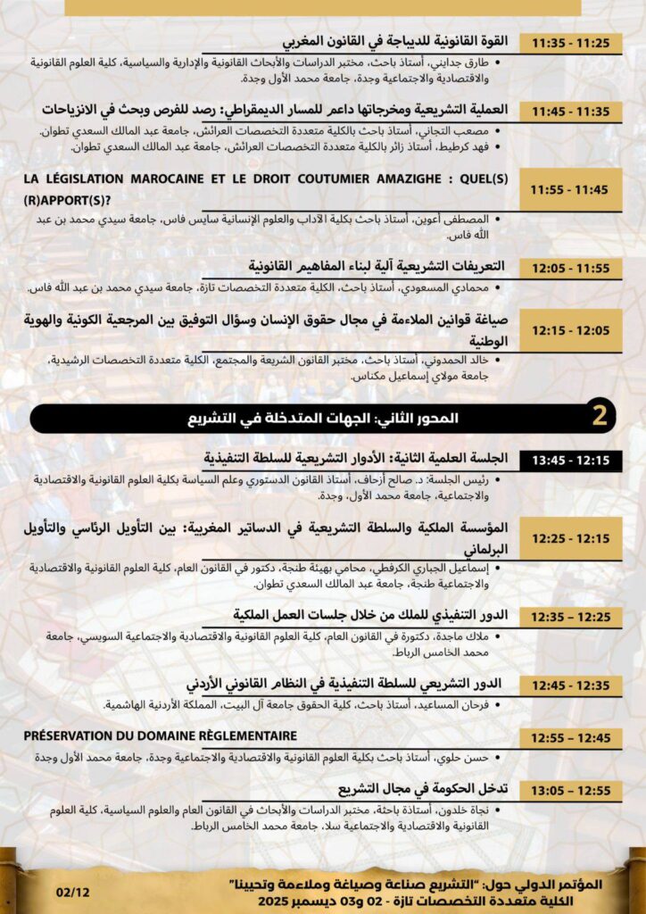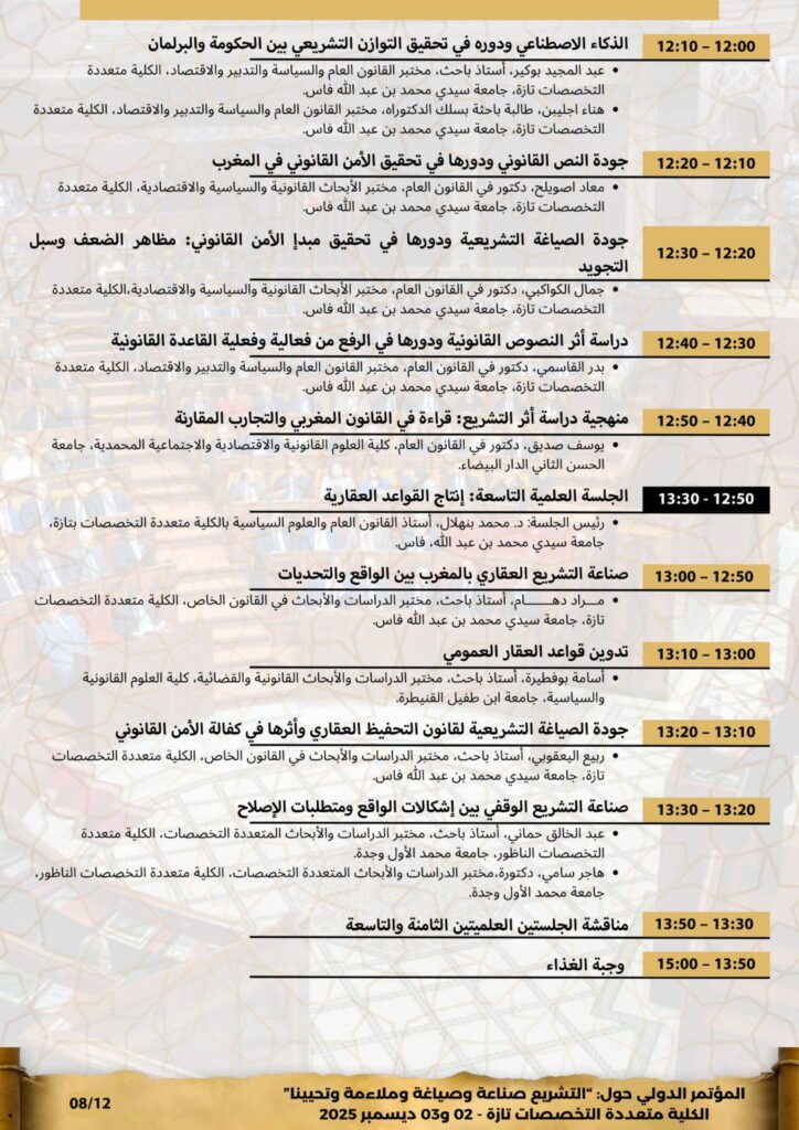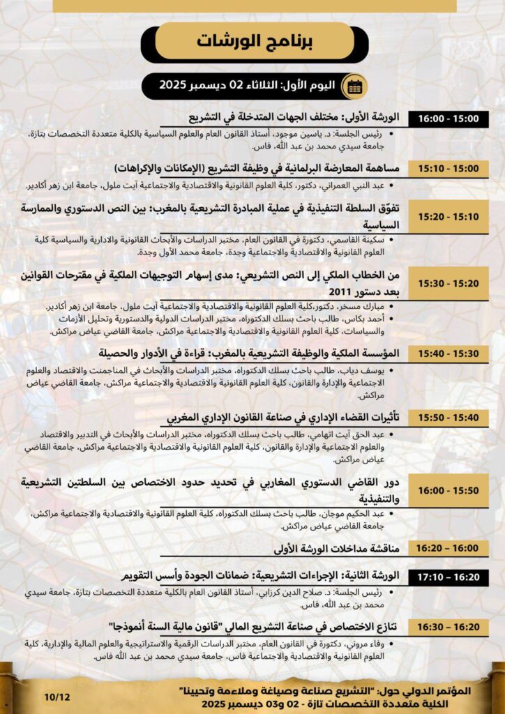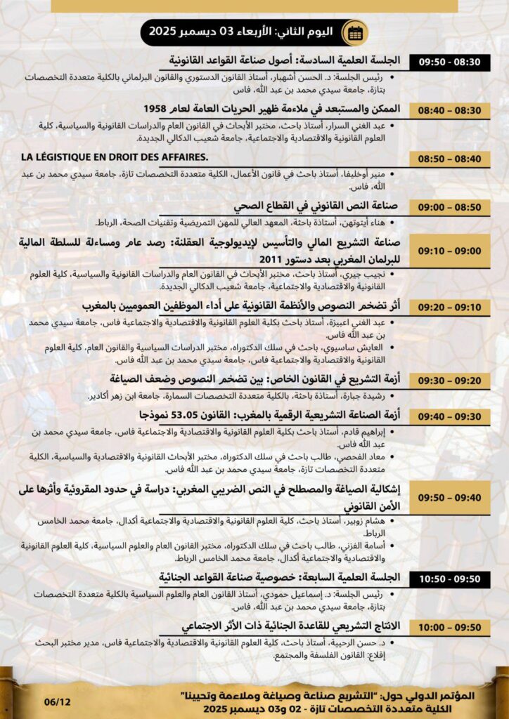 نظمت الكلية متعددة التخصصات بتازة، التابعة لجامعة سيدي محمد بن عبد الله بفاس، بالتعاون مع مختبر القانون العام والسياسة والتدبير والاقتصاد، مؤتمرا دوليا علميا هاما تحت عنوان “التشريع: صناعة وصياغة وملاءمة وتحيينا”. وقد جرت فعاليات هذا الحدث الأكاديمي يومي الثلاثاء والأربعاء 02 و03 ديسمبر 2025، حيث هدف المؤتمر إلى تفكيك وتحليل المنظومة التشريعية ومراحل صناعة القانون.
