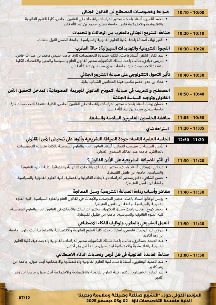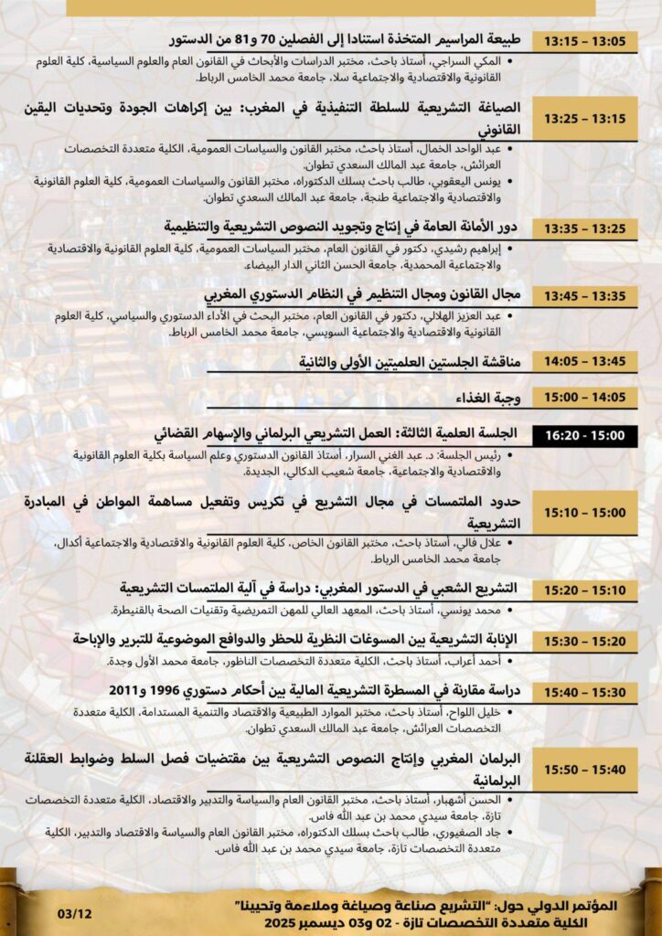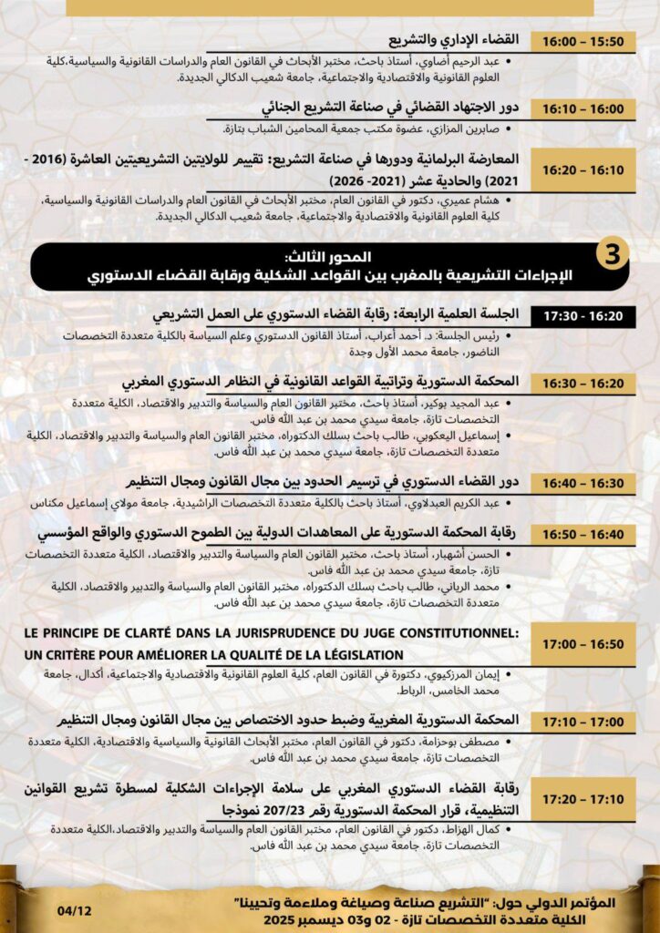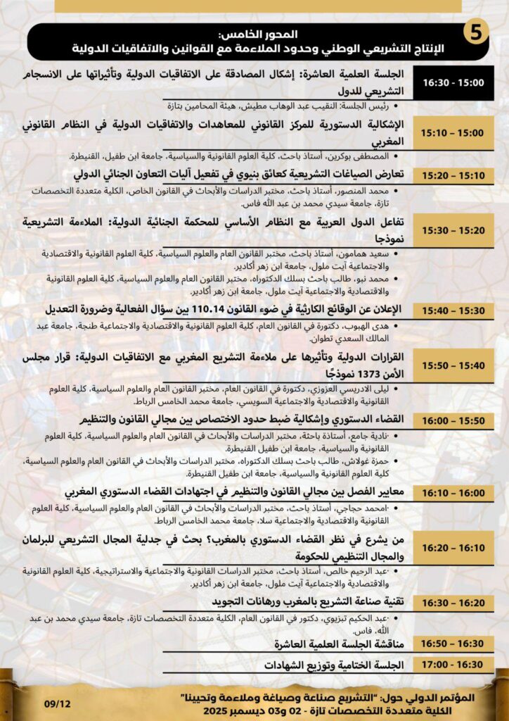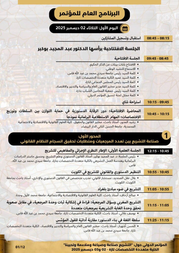 نظمت الكلية متعددة التخصصات بتازة، التابعة لجامعة سيدي محمد بن عبد الله بفاس، بالتعاون مع مختبر القانون العام والسياسة والتدبير والاقتصاد، مؤتمرا دوليا علميا هاما تحت عنوان “التشريع: صناعة وصياغة وملاءمة وتحيينا”. وقد جرت فعاليات هذا الحدث الأكاديمي يومي الثلاثاء والأربعاء 02 و03 ديسمبر 2025، حيث هدف المؤتمر إلى تفكيك وتحليل المنظومة التشريعية ومراحل صناعة القانون.